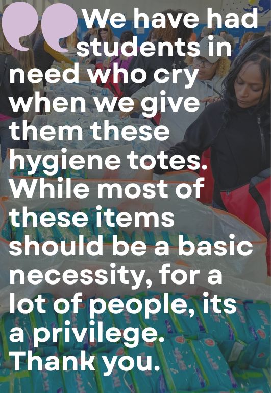 The Hope In A Bag program was founded in 2019 to address gaps in access to period and basic hygiene products in our community.